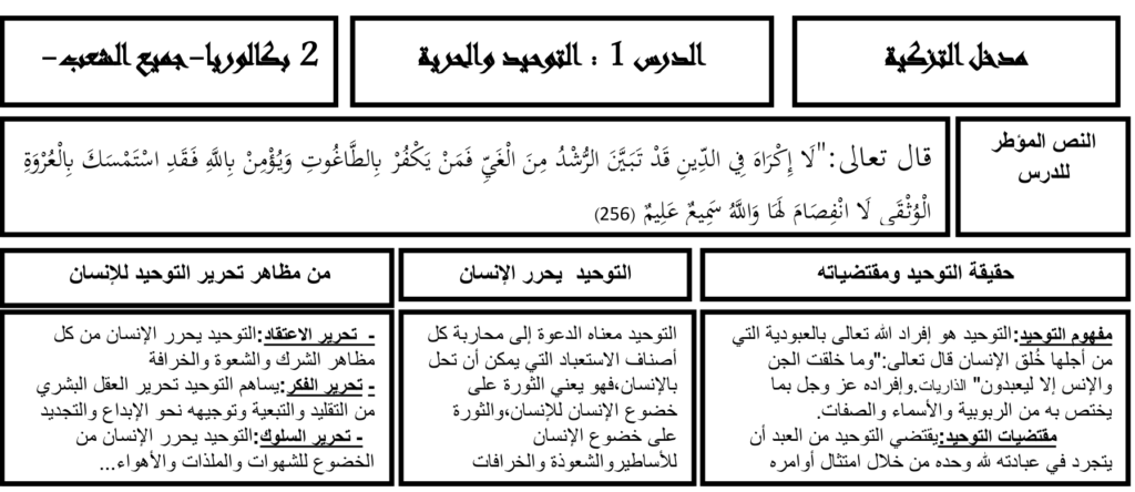 الخريطة الذهنية لدرس: التوحيد والحرية